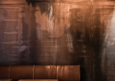 This concept embraces the idea of using cost effective materials – such as clay, plaster, terracotta, paint, jute, and reclaimed wood – crafting them into a high-end, beautiful restaurant space. The focus is on transforming ordinary materials into extraordinary experiences, yet provide a rustic, textured look.