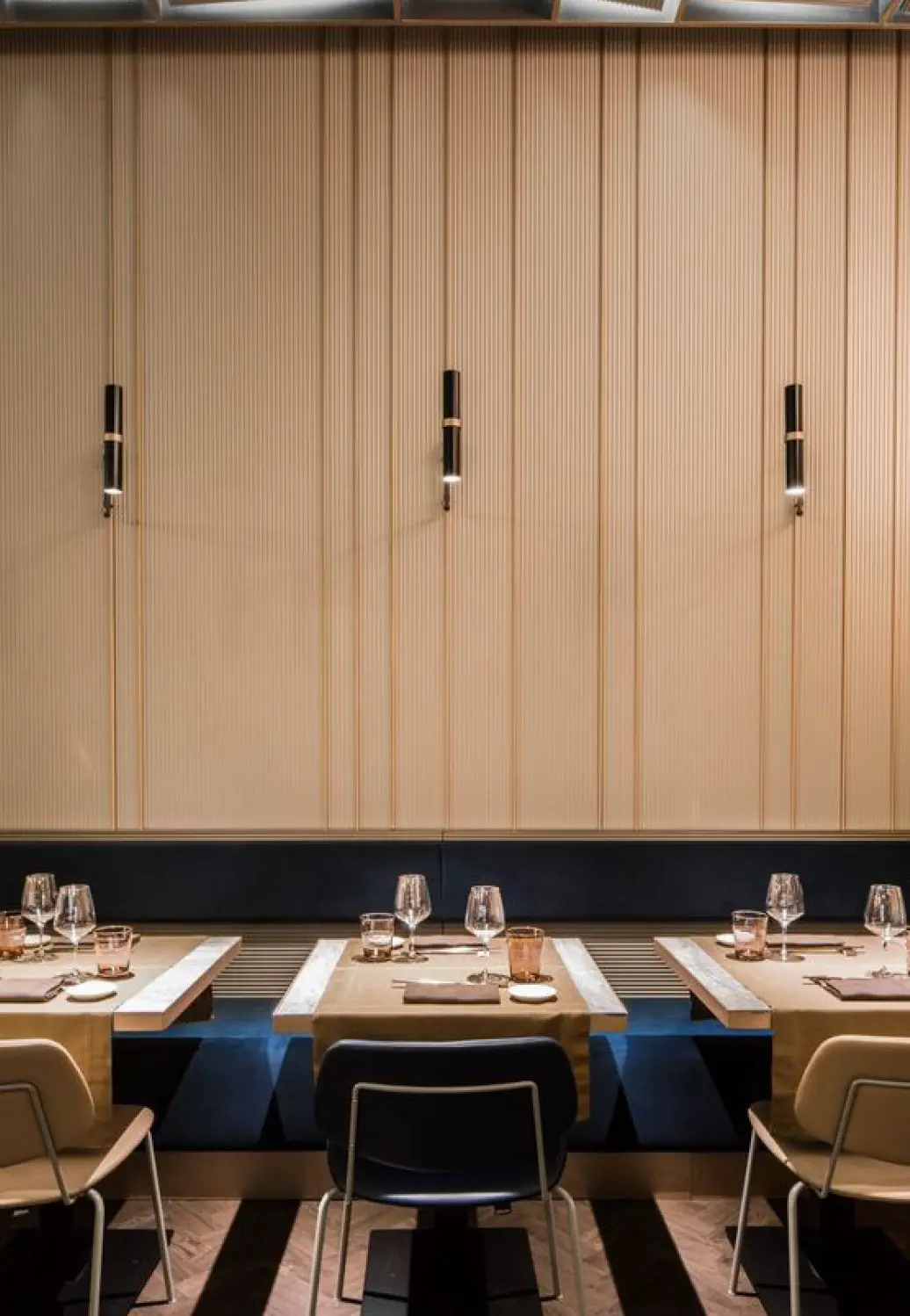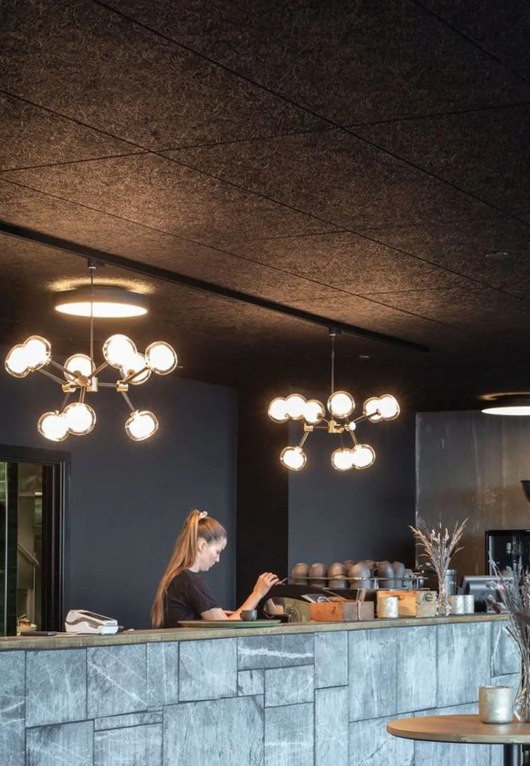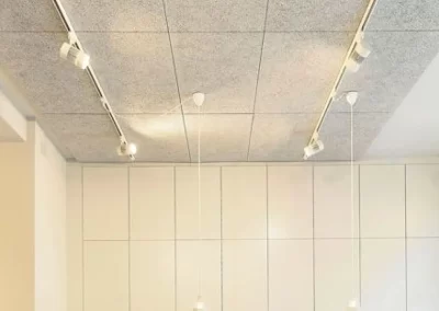 Acoustic ceiling tiles are designed to absorb sound, reducing echoes and minimising overall noise levels in a room. This property is crucial in creating a quieter and more comfortable environment, especially in spaces with high ceilings or hard surface. Coming in various styles, textures, and patterns they can blend seamlessly with the overall interior design of space. Acoustic ceiling tiles can be painted in acoustic paint that can camouflage the ceiling to the color scheme of the restaurant.