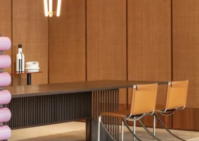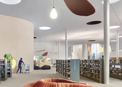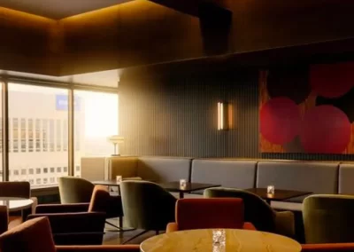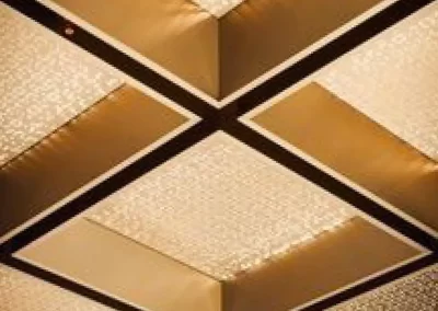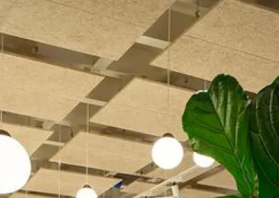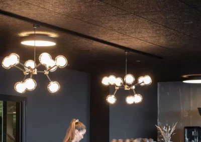 Acoustic panel baffles offer a dual-purpose solution for creating a decorative and high-end acoustic ceiling in a restaurant. By strategically placing these baffles and incorporating lighting elements, a seamless and aesthetically pleasing design can be achieved. Acoustic panel baffles with translucent or perforated designs allow lighting to pass through, this creates a visually stunning effect, adding depth and warmth to the space. This not only adds a layer of sophistication but also ensures that the accoustic solution seamlessly blends with the overall lighting design.