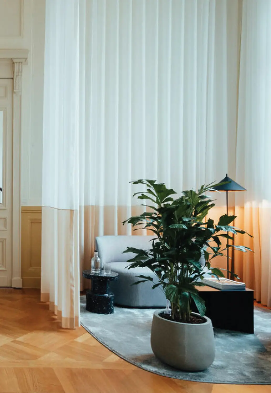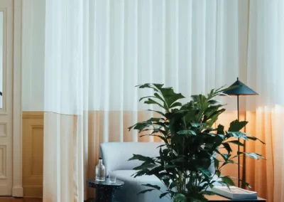 Transparent acoustic curtain fabrics are specifically designed to combat sound pollution in open-plan environments, these solutions enhance connection while mitigating negative health effects. These acoustic materials reduce echo time, absorb sound, and enhance comprehension. They are particularly effective in spaces with sound-reflective surfaces like concrete, glass, and marble, softening both reverberation and the overall atmosphere.