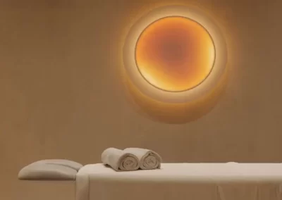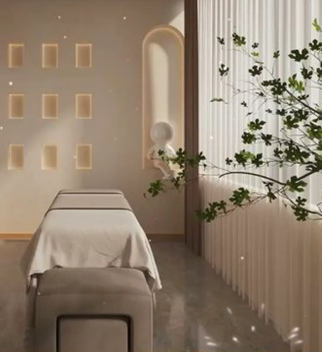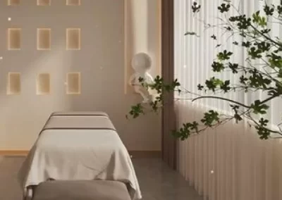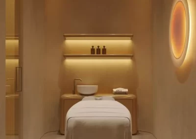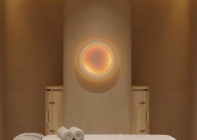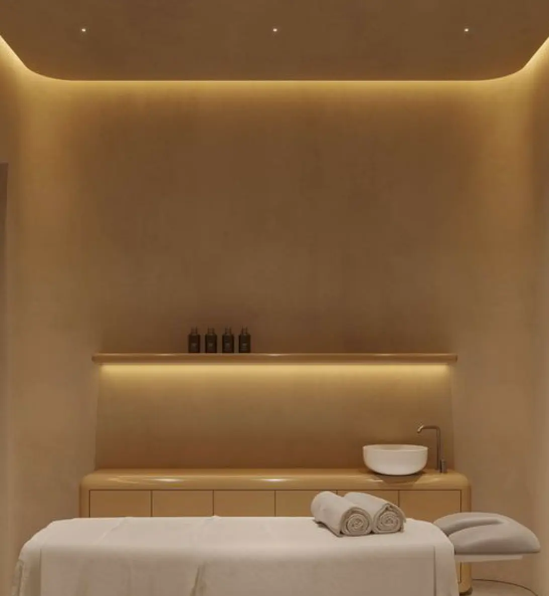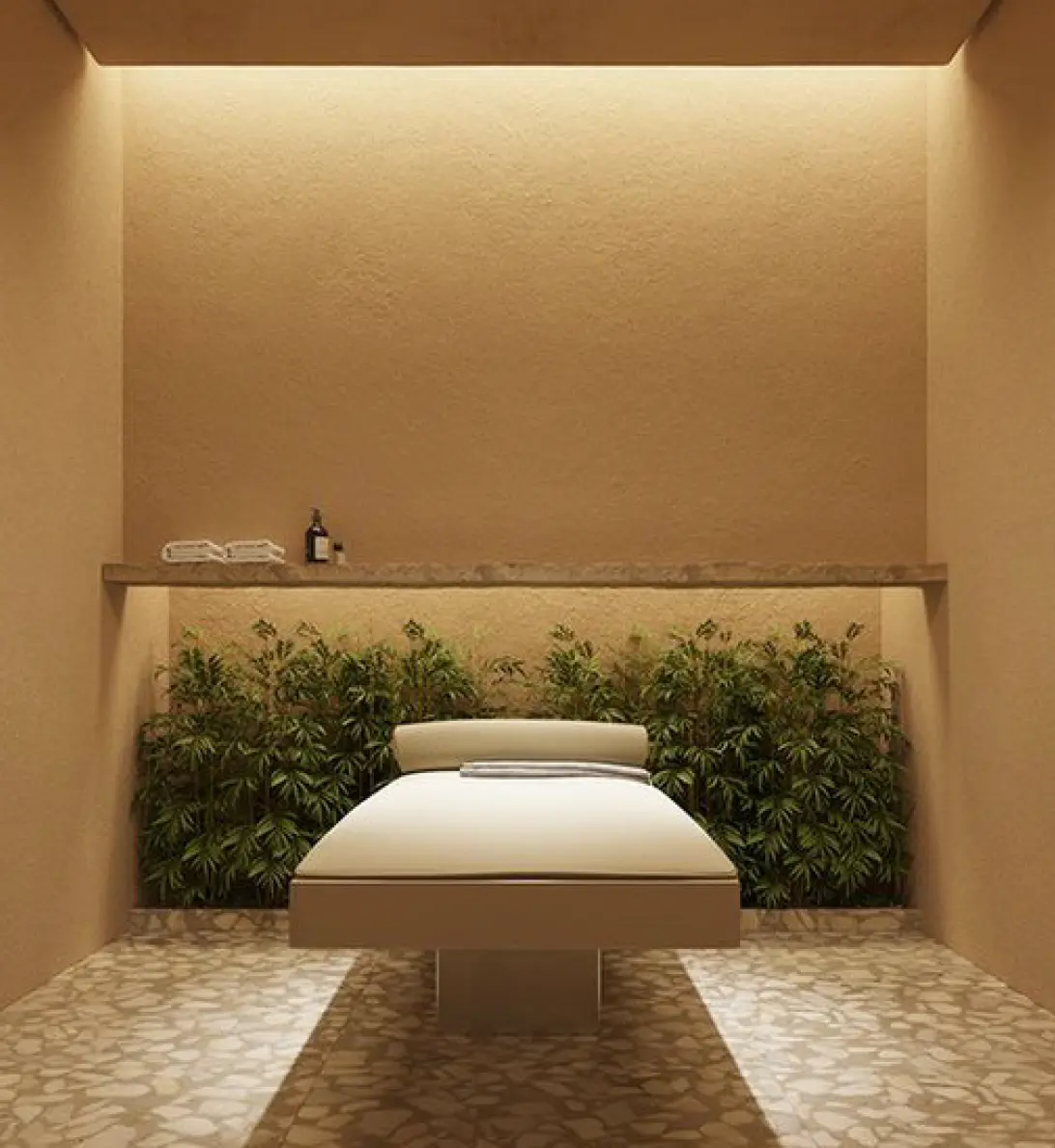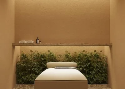 With plaster walls, understated finishes, and warm lighting, our therapy rooms are a harmonious blend of simplicity and elegance. Delicate green highlights, strategically placed, infuse a touch of nature, creating spaces where privacy seamlessly intertwines with comfort and relaxation, fostering a beautiful and tranquil atmosphere.