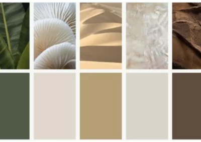 Inspired by the colours and textures of nature, a warm, natural, organic and elegant palette.