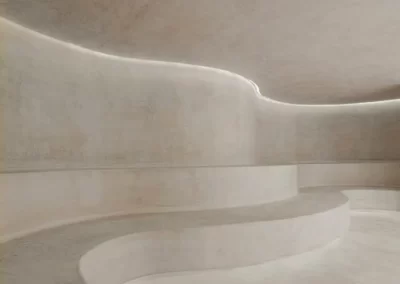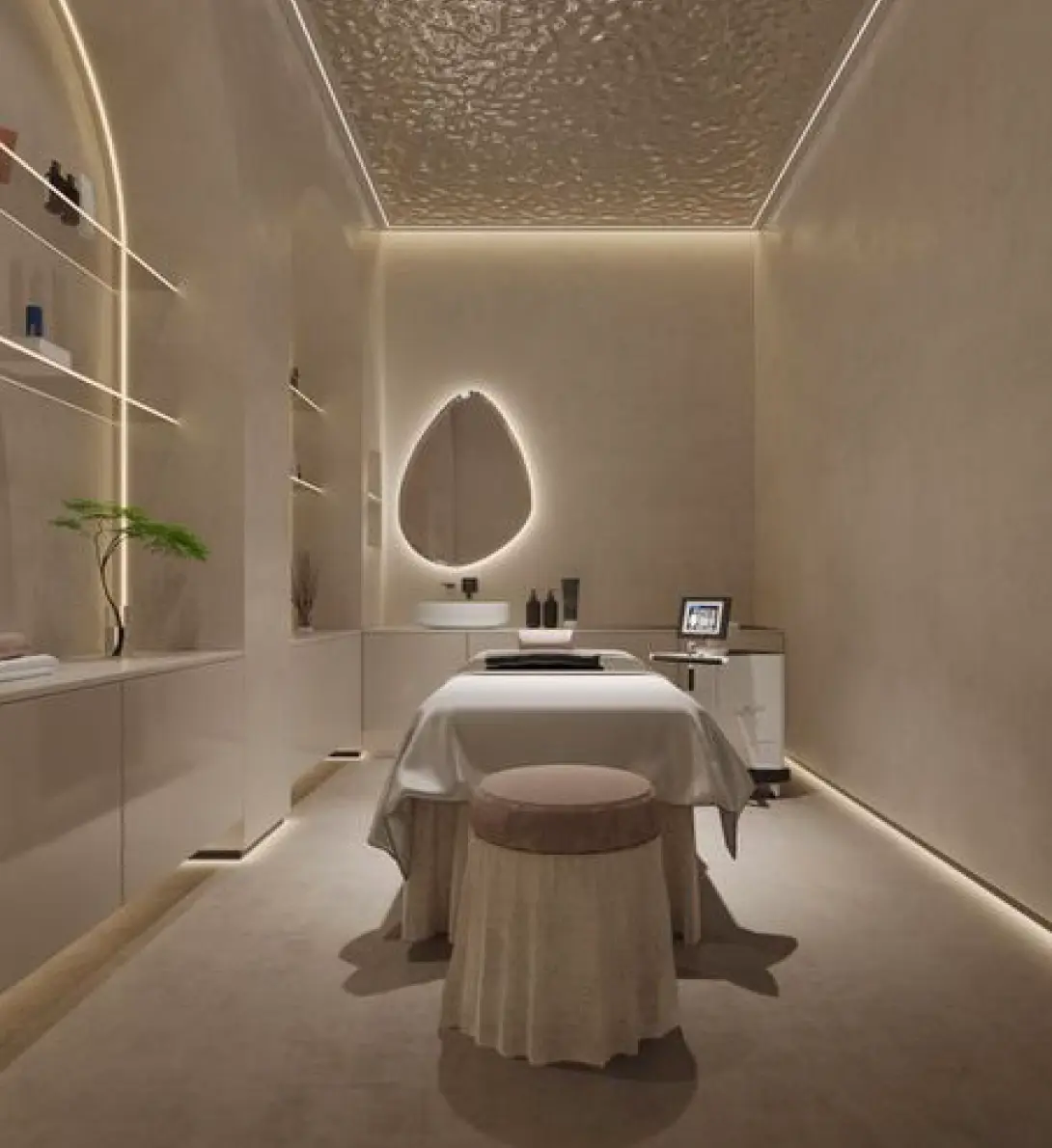 Crafted with an artful blend of plaster and elemental materials, SLB aesthetic clinic and academy interior design embodies a harmonious synthesis of minimalism and beauty. Elegant lines seamlessly merge with organic textures, creating a warm and peaceful environment that promotes tranquillity and well-being.