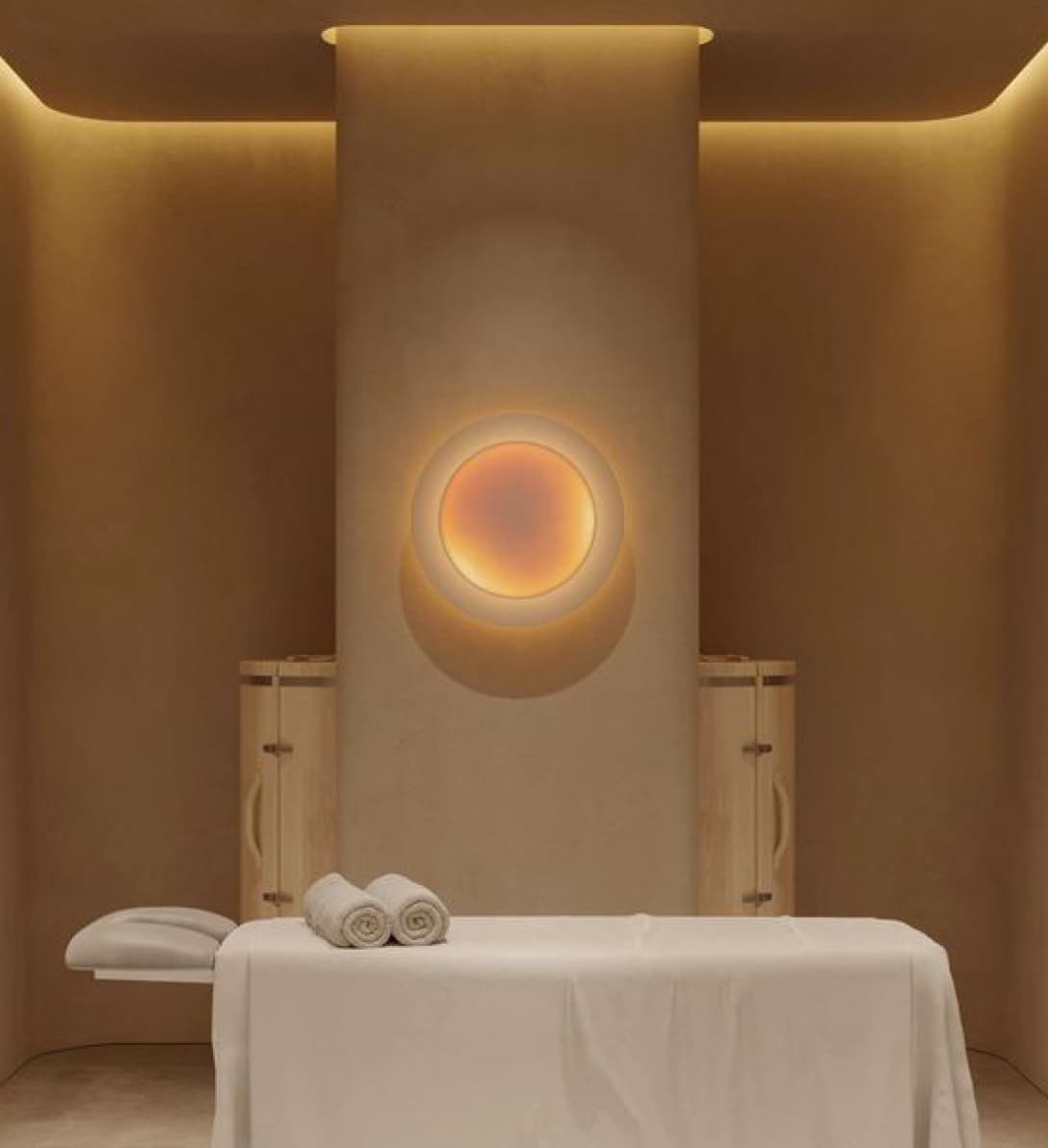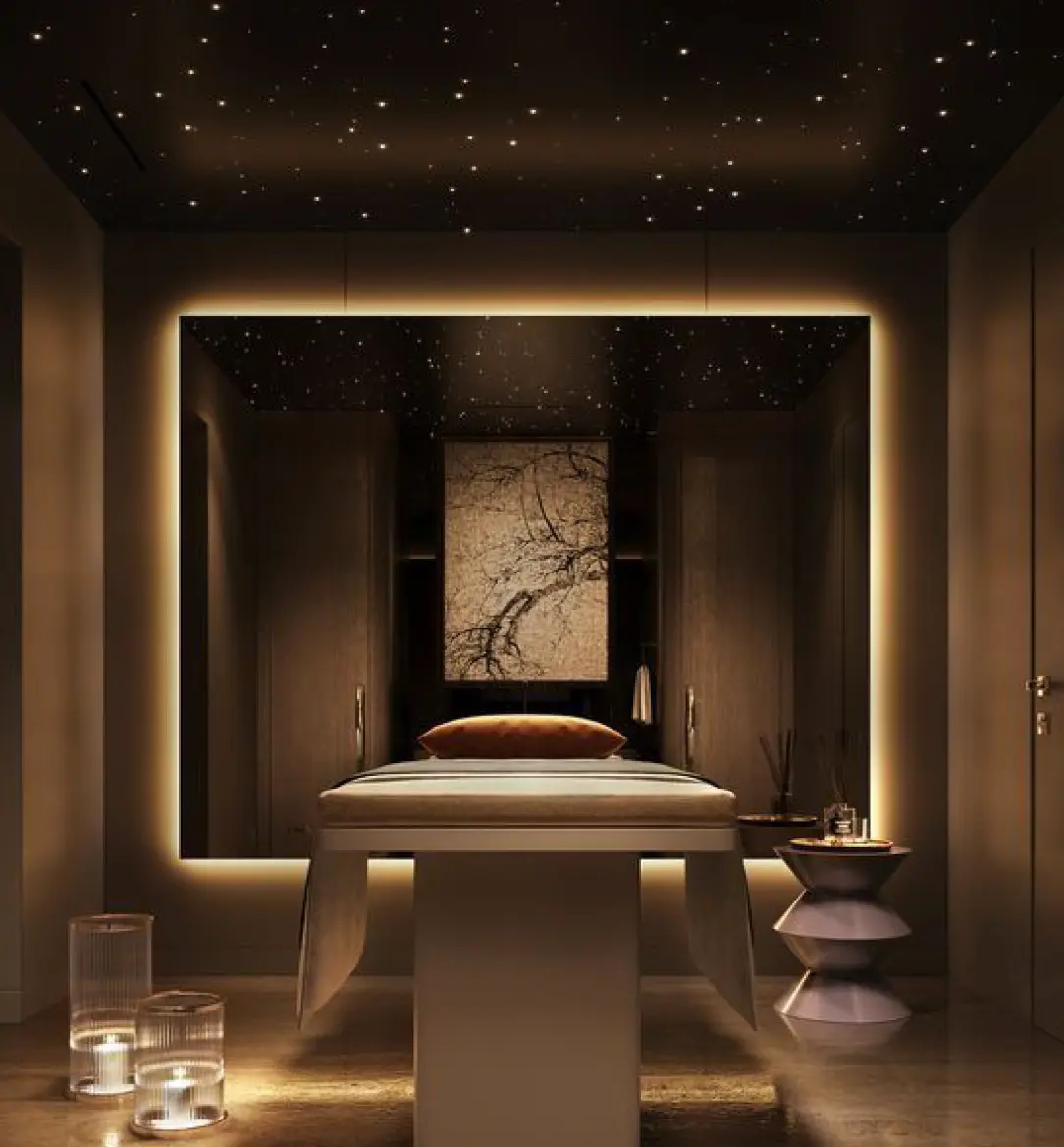 Innovative lighting takes centre stage in the design, with features like starry ceilings and warm wall glass lights, casting a mesmerising glow that elevates the atmosphere. Recognising the pivotal role of lighting in interior design, these techniques are thoughtfully employed to craft a beautiful ambiance, setting the intended mood for a truly enchanting experience.
