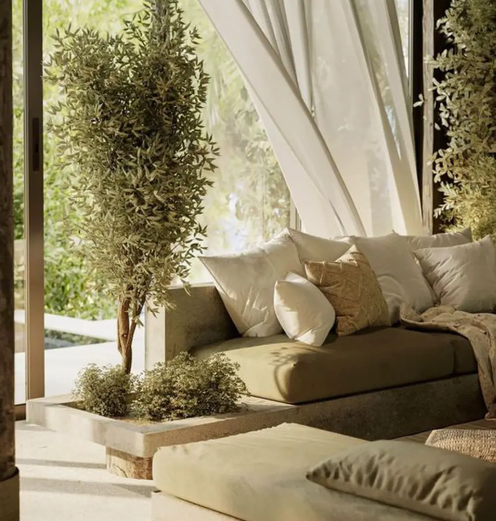 Villa Citrus is rooted in nature’s embrace, drawing colours from the depths of the sea to the canopy of trees. A harmonious blend of aquatic blues and verdant greens creates an ethereal haven that echoes the tranquil beauty of the surroundings.