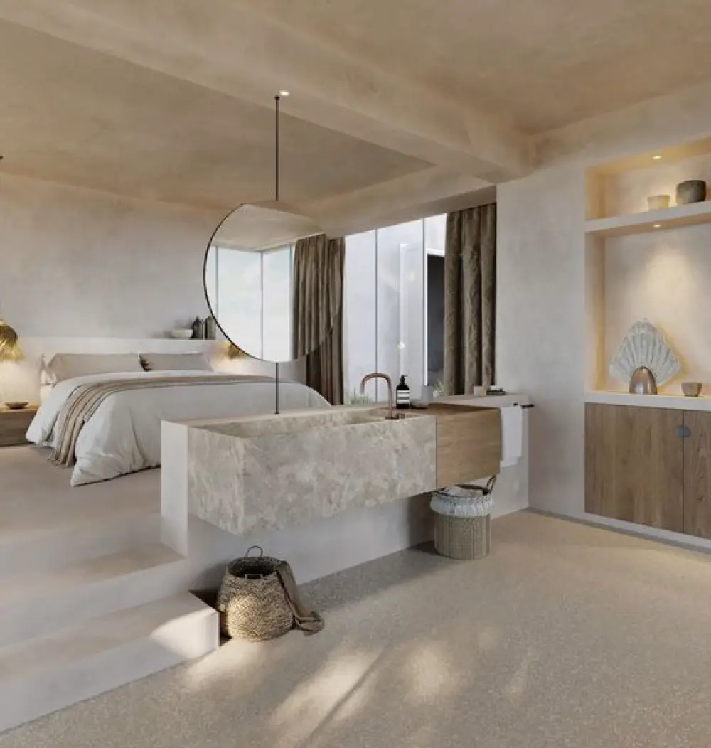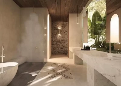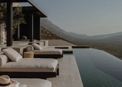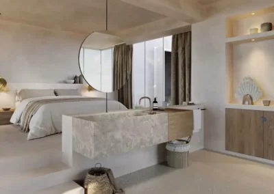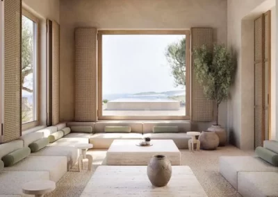These villas are meant to be more than just spaces, they’re havens to unwind, reflect and relish every moment. The interiors we are after are a symphony of comfort, elegance and opulence, meticulously tailored to cocoon guests. The soul of the spaces will be directly connected to the spirit of the Mediterranean, with a nod to the sea, they embrace the Greek spirit. Gentle colours and surfaces reminiscing nature will be the main features that will make all four residences authentic. Within the project, a wellness centre will stand as an oasis within an oasis, a space of tranquility and rejuvenation.